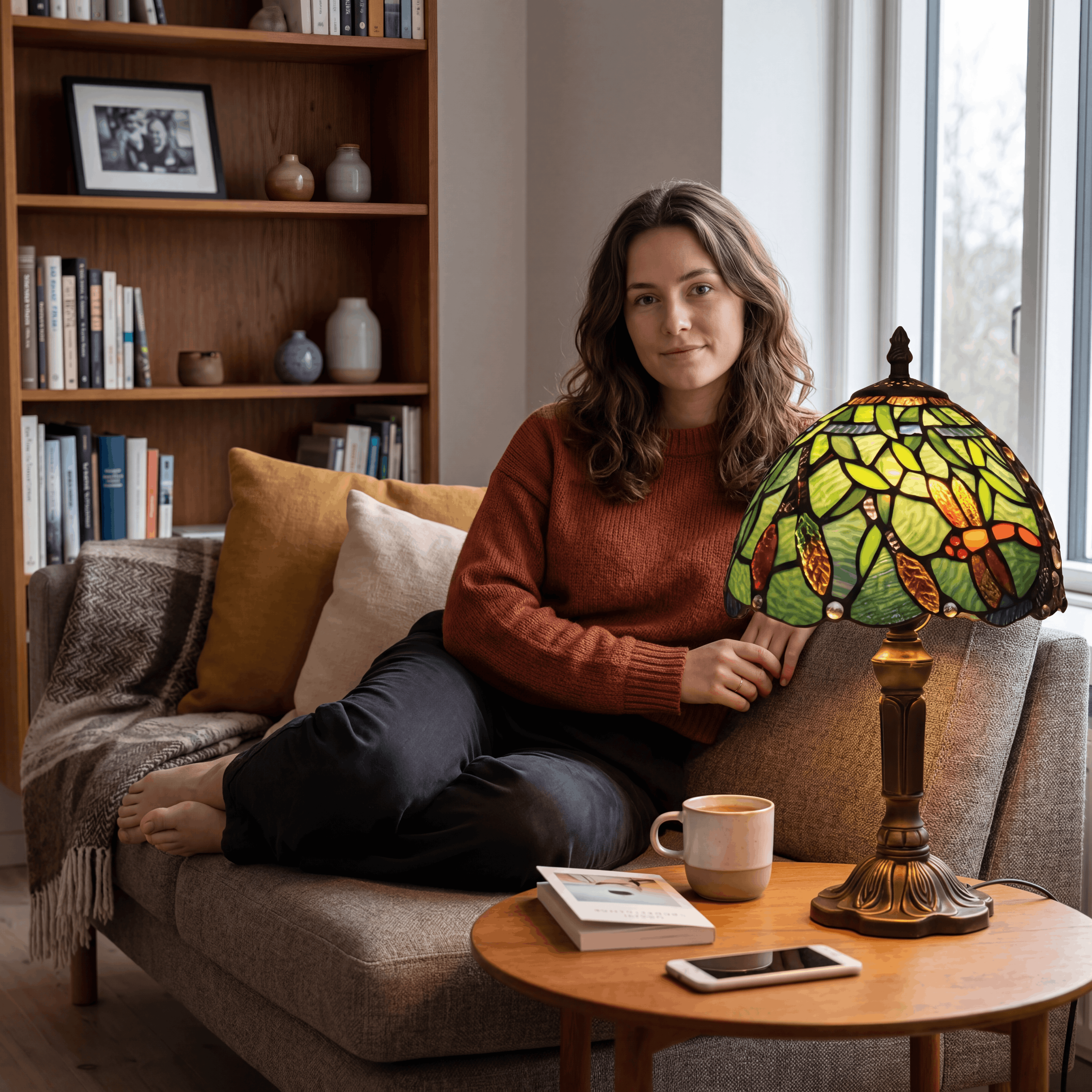 "Denne lampe er blevet mit yndlingselement i stuen. Det grønne glas og de fine detaljer giver et smukt, levende udtryk, og lyset er både varmt og afslappende. Den gør virkelig rummet mere hyggeligt uden at virke for voldsom."