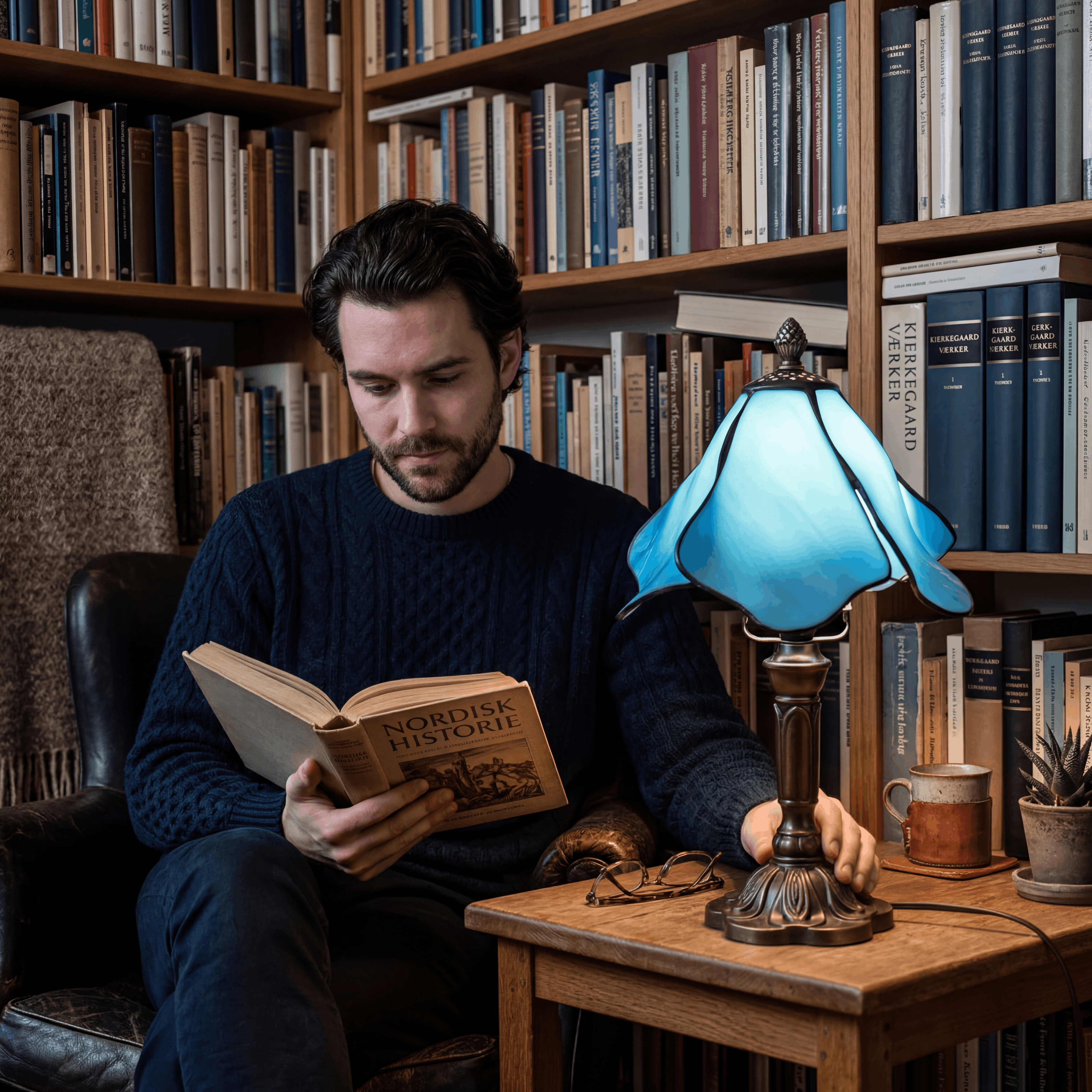 "Den blå lampe skaber en rolig og behagelig stemning, som er perfekt til læsning om aftenen. Jeg var især imponeret over de fine detaljer i glasset og den solide base. Den ser eksklusiv ud og giver rummet masser af karakter."