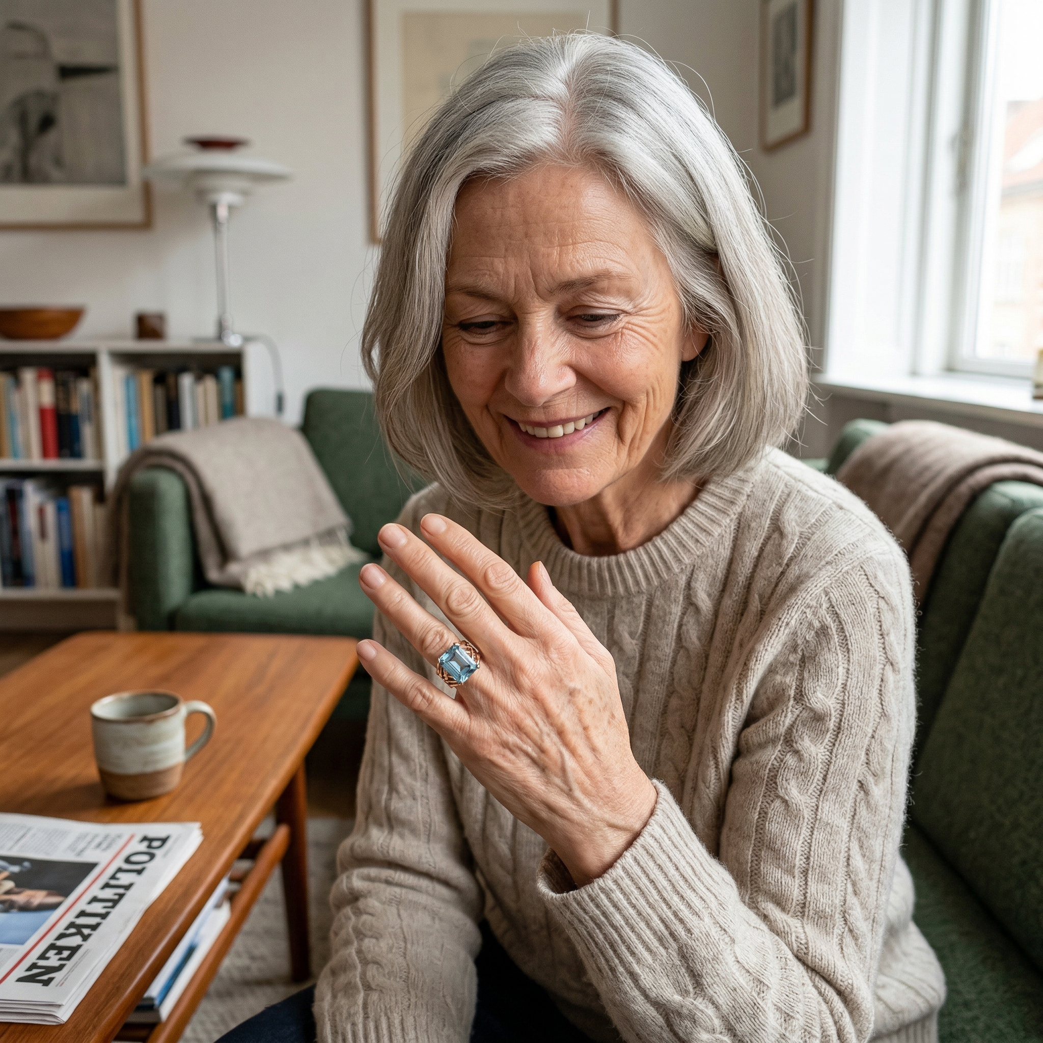 "Jeg er virkelig glad for denne ring. Den blå sten er utrolig smuk og giver et elegant udtryk uden at være for prangende. Den føles behagelig at have på og passer perfekt både til hverdag og når man vil gøre lidt ekstra ud af sit outfit."