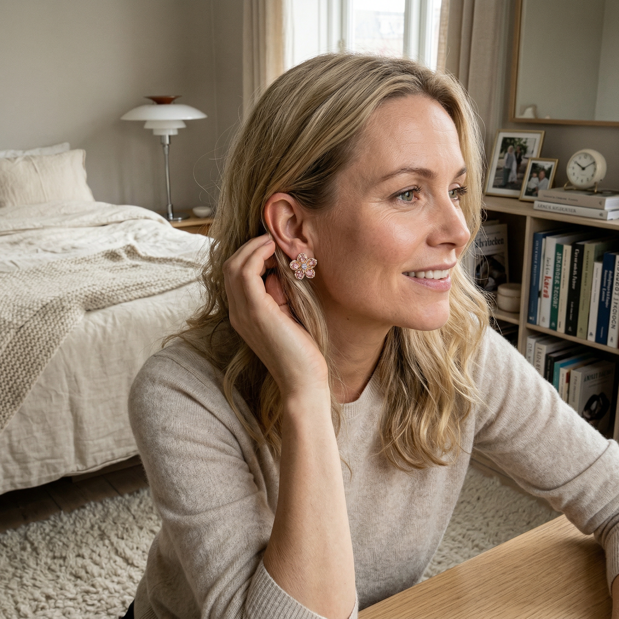 "Jeg blev virkelig positivt overrasket over disse øreringe. De er lette at have på hele dagen og giver et elegant, men stadig naturligt udtryk. Farverne er smukke og passer perfekt til både hverdag og lidt mere festlige lejligheder."